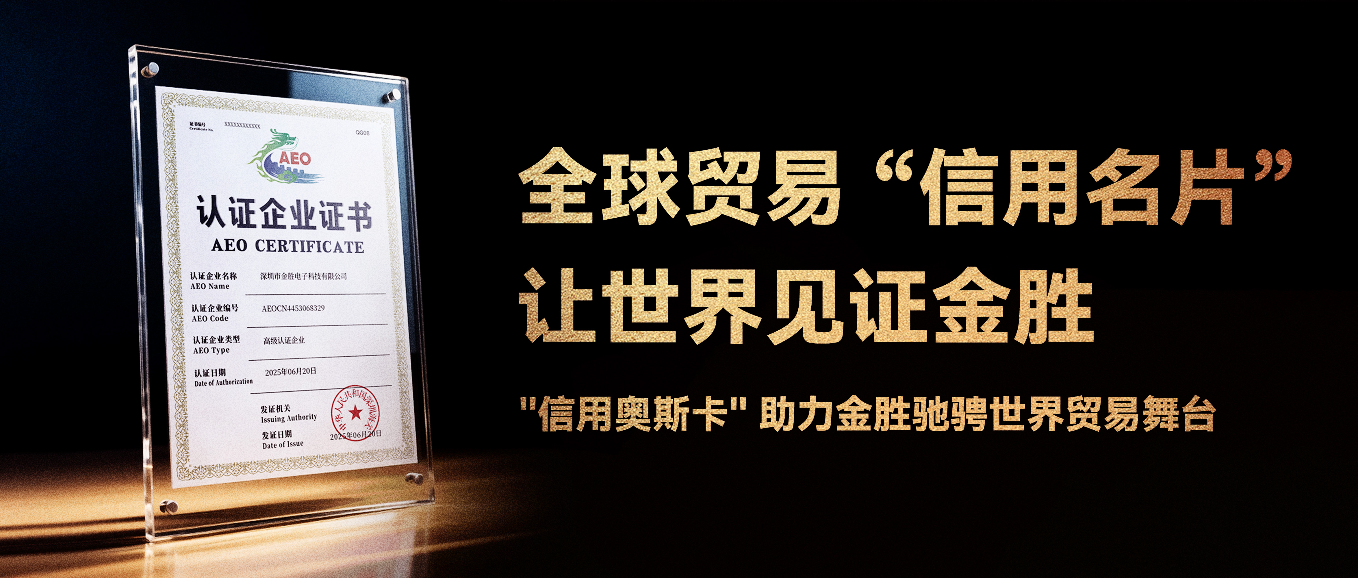 【重磅喜訊】深圳市金勝電子科技有限公司正式通過海關AEO高級認證! 了解更多